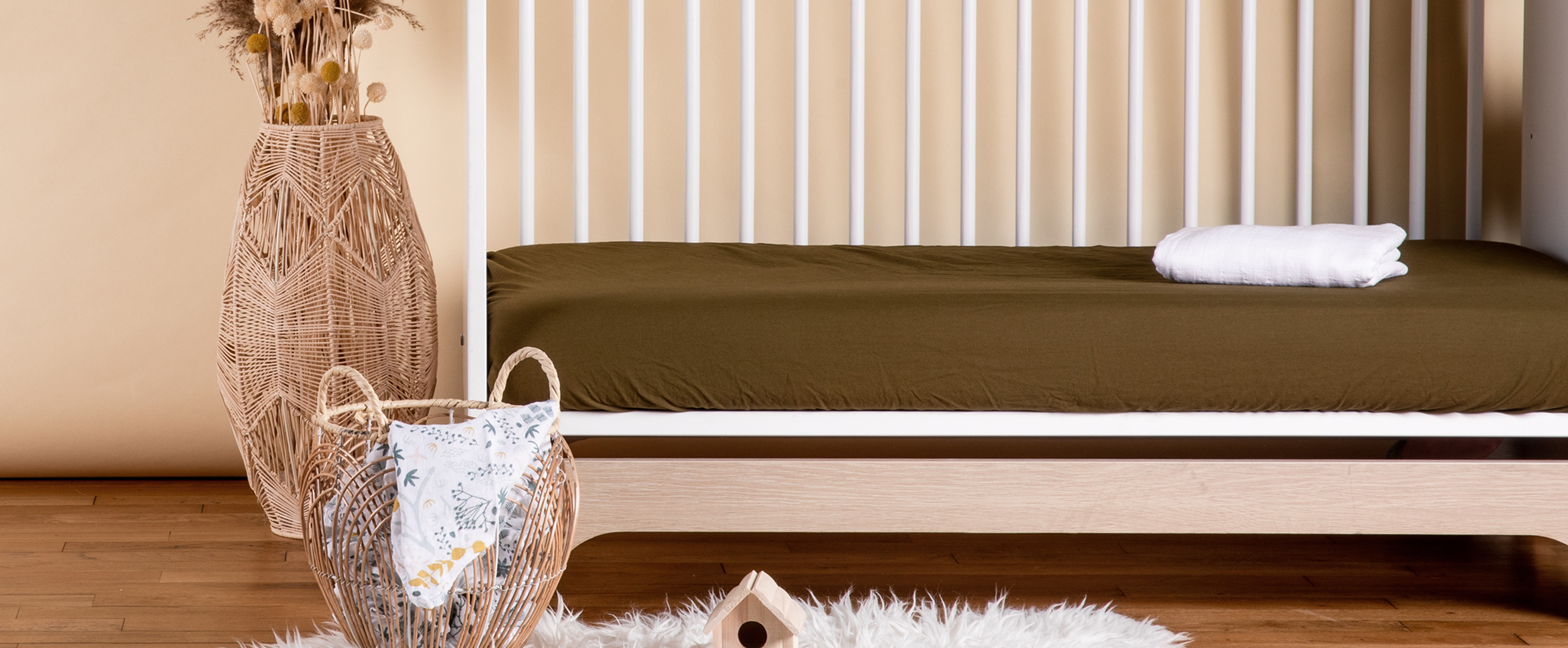 Crib fitted sheet in organic washed cotton percale | Kadolis Canada