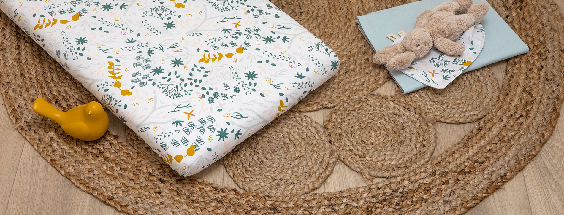 Inspirée par les paysages japonais, Sophie a imaginé ces jolis motifs végétaux, pour le plus grand bonheur des tout-petits.